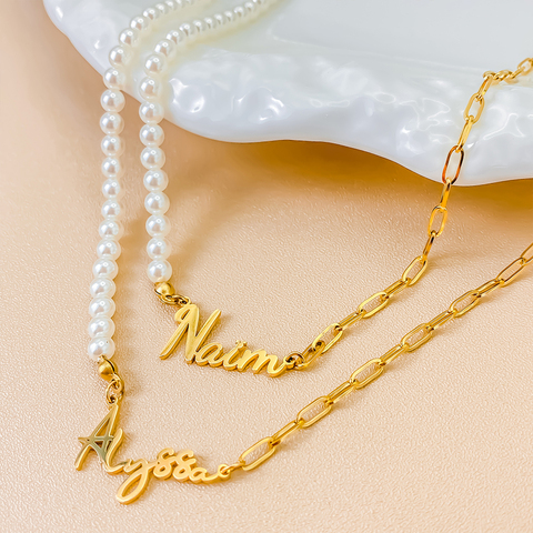 Dropshipping Gepersonaliseerde Custom Ketting Naambord Roestvrij Staal Naam Imitatie Parel Naam Ketting